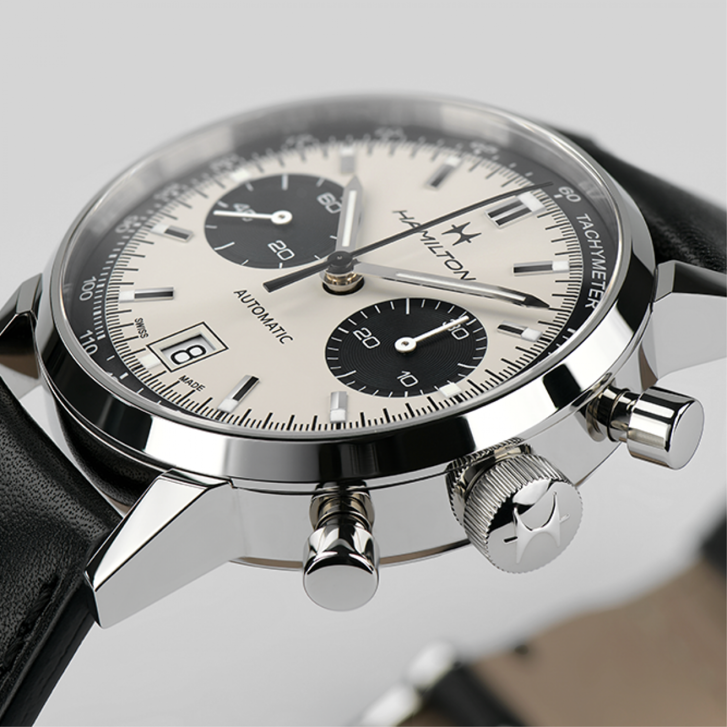 Funkce:Čas, datum, chronograf = stopky, strojek Hamilton swiss H-31 (základ Eta Valjoux 7750 - 27 kamenů), rezerva chodu 60 hodin, polokmity setrvačky 28.800 za hodinu = přesnost chodu 2 - 4 vteřiny denně, křemíkový vlásek - téměř antimagnetický s bezkonkurenční stabilitou pro přesnost chodu strojku a větší stabilitou proti nárazům, automatický + ruční nátah, šroubovací vodotěsná korunka, luminiscenční ručičky a indexy
