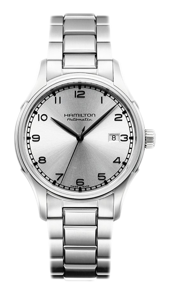 Funkce:Čas, datum, strojek swiss kalibr H-10 - vyráběn firmou Eta exklusivně pro Hamilton = 25 kamenů (krokové ústrojí ocel/kámen), rezerva chodu 80 hodin, polokmity setrvačky 21.600/h = přesnost chodu 3 - 5 vteřin denně (nižší polokmity setrvačky jsou vyladěny jemnou regulací pro maximální přesnost strojku na věnci setrvačky), úprava rotoru samonátahu dle vzoru Hamilton - rotor zaopatřen speciálními výřezy na tlumení případných nárazů hodinek během nošení, automatický nátah (pohyb ruky) + ruční nátah (hodinky lze také natahovat i korunkou), průhledné zadní víčko pro náhled na strojek