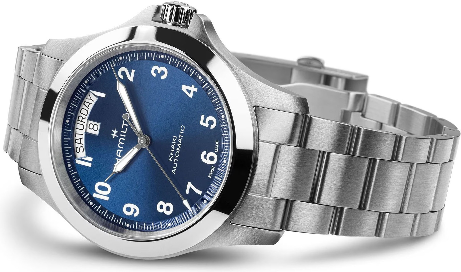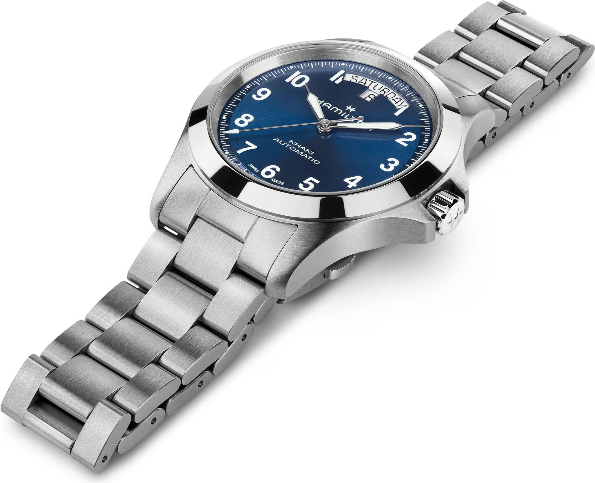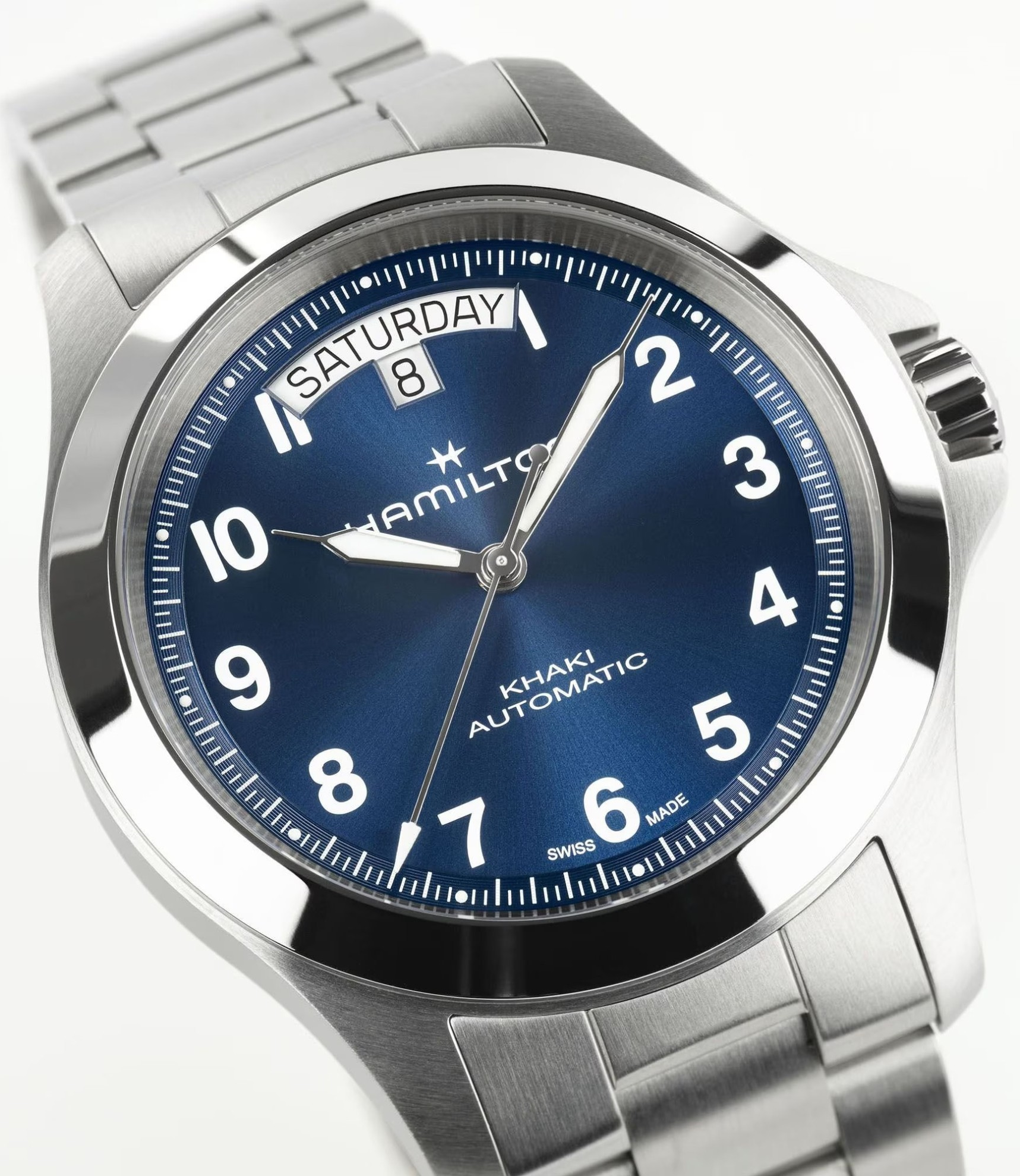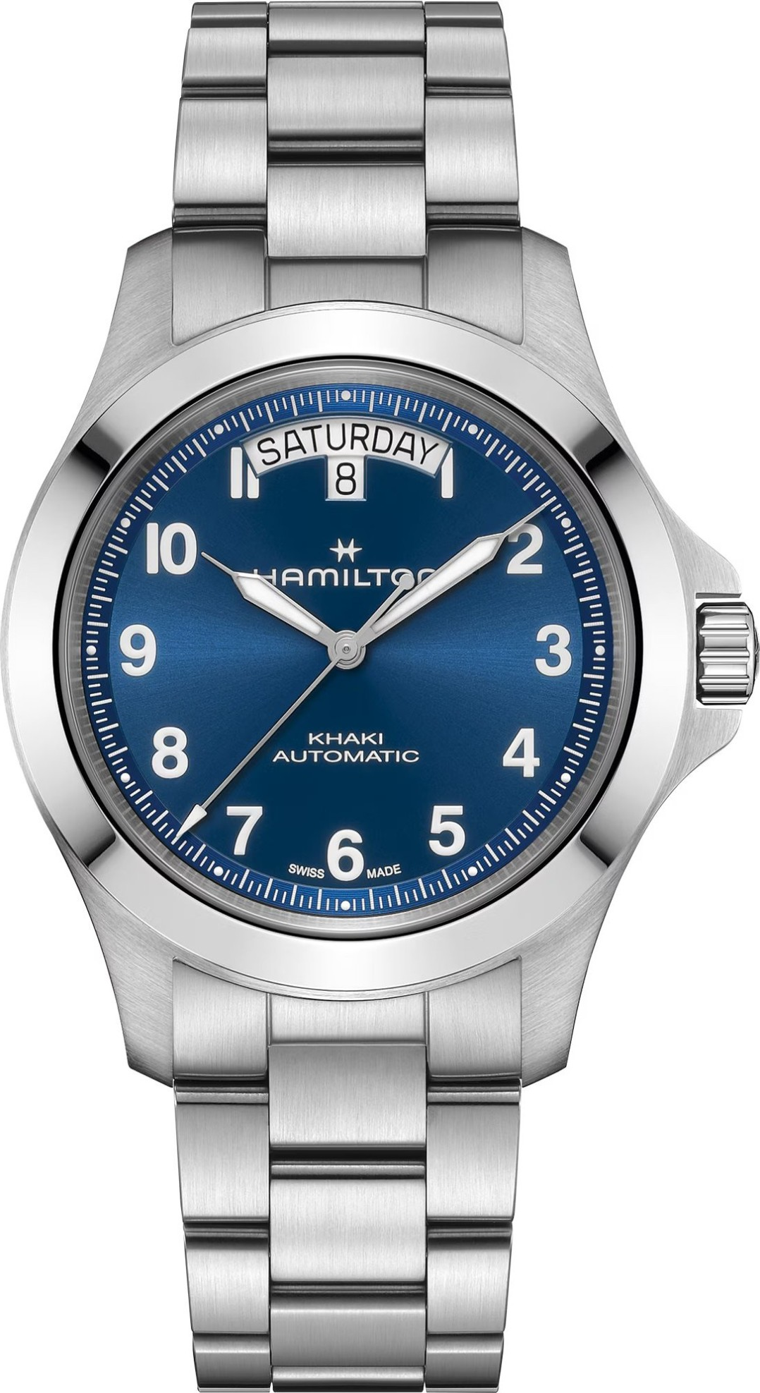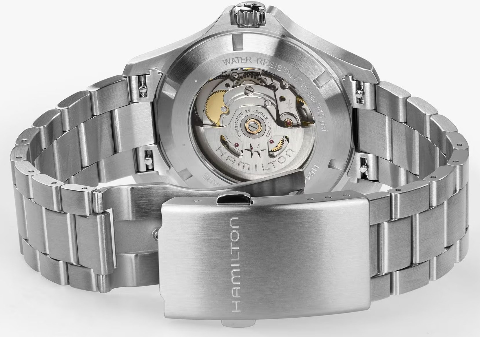 Funkce:Čas, datum, strojek Swiss kalibr H-40 (krokové ústrojí ocel/kámen) - vyráběn firmou Eta exklusivně pro Hamilton (25 kamenů), rezerva chodu 80 hodin, polokmity setrvačky 21.600/h = přesnost chodu 3 - 5 vteřin denně (vysoké přesnosti stroje je docíleno jemnou regulací šroubky na ramínkách věnce setrvačky), úprava rotoru samonátahu dle vzoru Hamilton - rotor zaopatřen speciálními výřezy pro tlumení případných nárazů na hodinky během nošení, vlásek setrvačky je vyroben ze slitiny materiálů Nivachron (velmi dobře odolává magnetickému poli a díky tomu jsou hodinky stabilně vysoce přesné), automatický nátah (hodinky se natahují pohybem ruky) + ruční nátah (hodinky lze natáhnout/dotáhnout dle potřeby i ručně korunkou), průhledné zadní víčko pro náhled na strojek, svítící ručičky a indexy (ručičky a indexy jsou potaženy luminiscenční vrstvou Super-LumiNova®, která po nasvícení dlouhou dobu svítí)