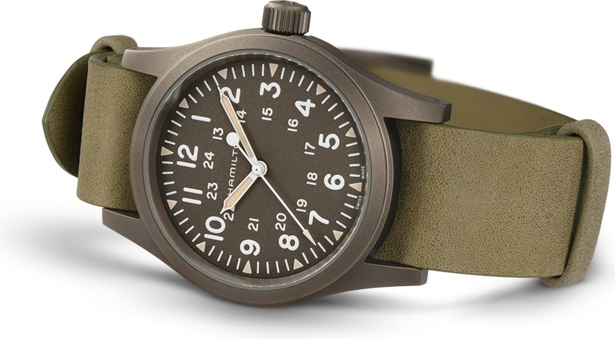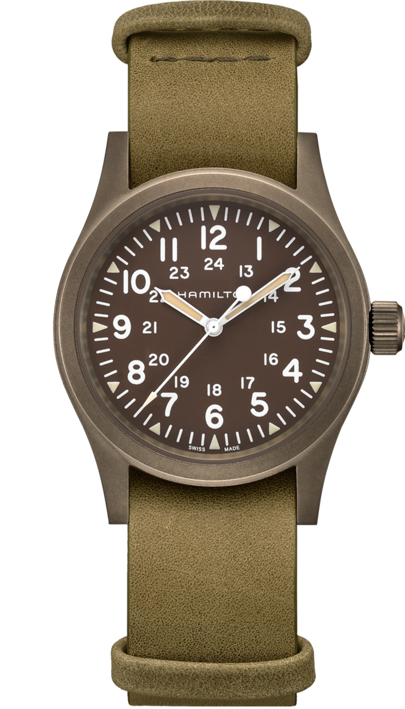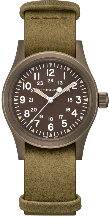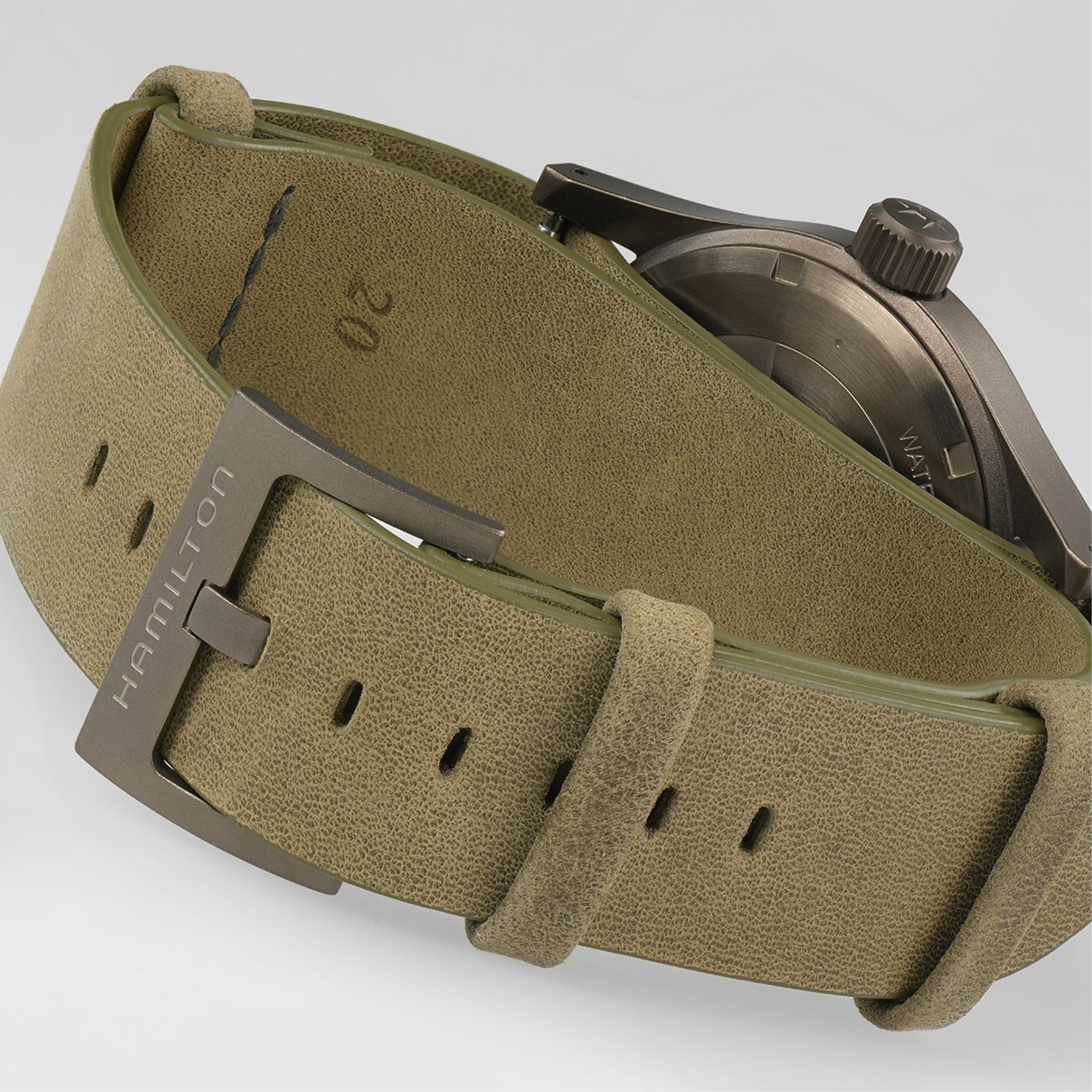 Funkce:Čas, strojek swiss kalibr H-50 (krokové ústrojí ocel/kámen) - vyráběn firmou ETA exklusivně pro Hamilton (základ ETA 2801-2 - 17 kamenů), rezerva chodu 80 hodin, polokmity setrvačky 21.600/h = přesnost chodu 3 - 5 vteřin denně - nižší kmity setrvačky jsou vyladěny regulací na maximální přesnost strojku, ruční nátah (mechanické), průhledné zadní víčko pro náhled na strojek, svítící ručky a indexy Super-LumiNova®