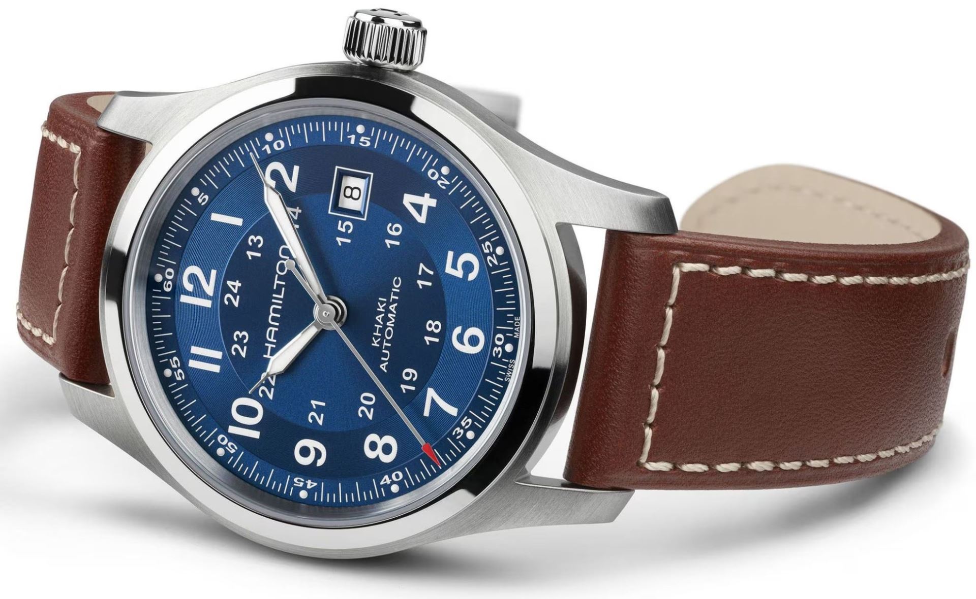 Funkce:Čas, datum, strojek swiss kalibr H-10 - vyráběn firmou Eta exklusivně pro Hamilton = 25 kamenů (krokové ústrojí ocel/kámen), rezerva chodu 80 hodin, polokmity setrvačky 21.600/h = přesnost chodu 3 - 5 vteřin denně (nižší polokmity setrvačky jsou vyladěny jemnou regulací pro maximální přesnost strojku na věnci setrvačky), úprava rotoru samonátahu dle vzoru Hamilton - rotor zaopatřen speciálními výřezy na tlumení případných nárazů hodinek během nošení, automatický + ruční nátah, průhledné zadní víčko pro náhled na strojek, luminiscence na ručkách