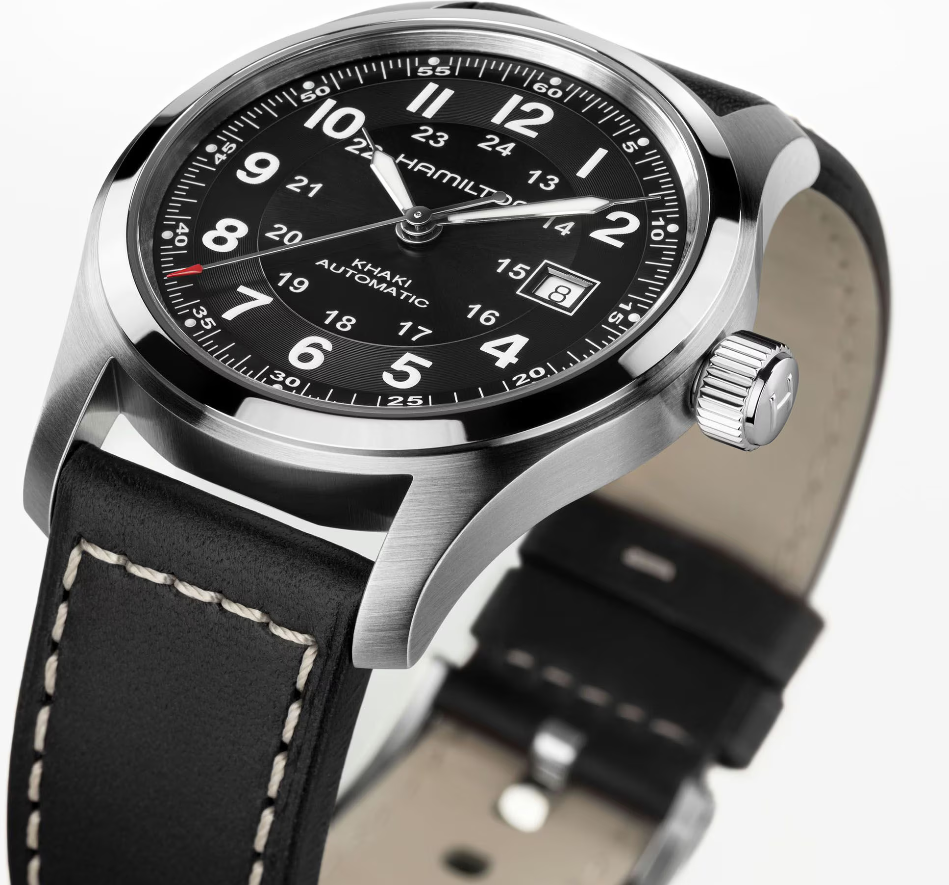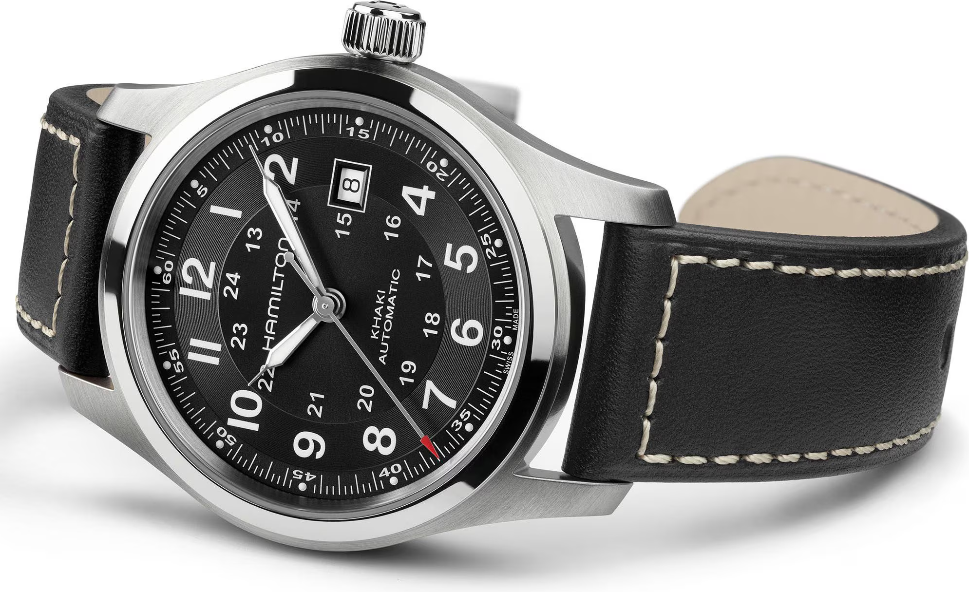 Funkce:Čas, datum, strojek swiss kalibr H-10 - vyráběn firmou Eta exklusivně pro Hamilton = 25 kamenů (krokové ústrojí ocel/kámen), rezerva chodu 80 hodin, polokmity setrvačky 21.600/h = přesnost chodu 3 - 5 vteřin denně (nižší polokmity setrvačky jsou vyladěny jemnou regulací pro maximální přesnost strojku na věnci setrvačky), úprava rotoru samonátahu dle vzoru Hamilton - rotor zaopatřen speciálními výřezy na tlumení případných nárazů hodinek během nošení, automatický + ruční nátah, průhledné zadní víčko pro náhled na strojek, svítící ručičky a číslice